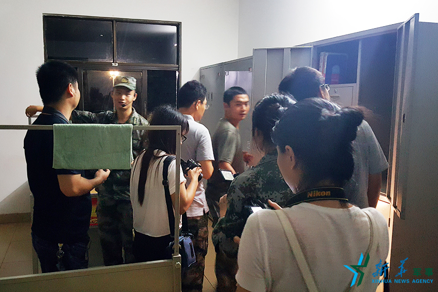 網(wǎng)絡(luò)名人以及媒體代表參觀連隊(duì)營區(qū)、內(nèi)務(wù)設(shè)施。李朋芳 攝