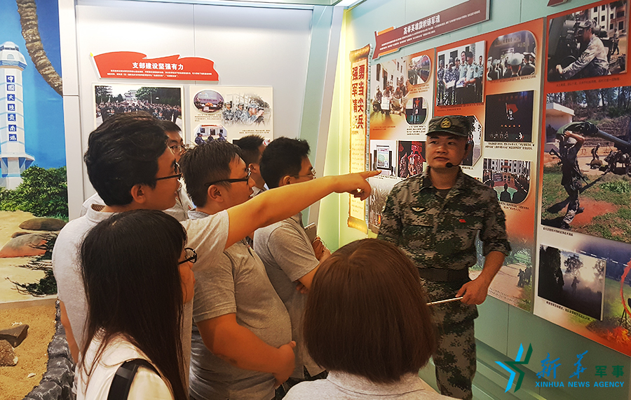 網(wǎng)絡(luò)名人以及媒體代表參觀連隊(duì)榮譽(yù)室。李朋芳 攝