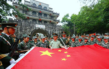 ????“出旗!”金黃綬帶宛若飛霞,長統(tǒng)軍靴潔凈锃亮,伴著“咔咔咔”的正步聲,一支身著橄欖綠軍裝的國旗護衛(wèi)隊邁著矯健而堅定的步伐,從中越邊境廣西友誼關城樓緩步邁出。