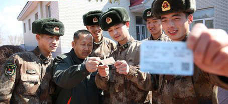 張青葉給官兵們送車(chē)票。圖片來(lái)源:軍報(bào)記者