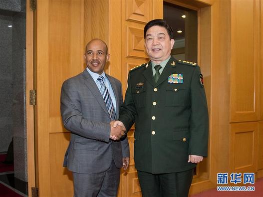 2月23日,國務(wù)委員兼國防部長常萬全在北京八一大樓會見埃塞俄比亞國防部長西拉杰。 新華社記者 琚振華 攝