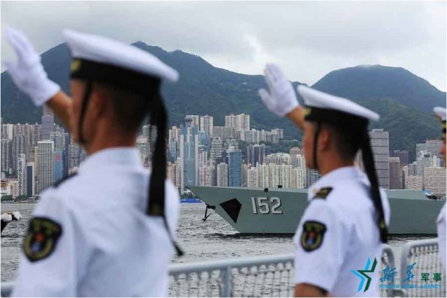 ↑7月7日,海軍濟(jì)南艦駛?cè)胂愀郯捍薮a頭。新華社記者 曾濤 攝