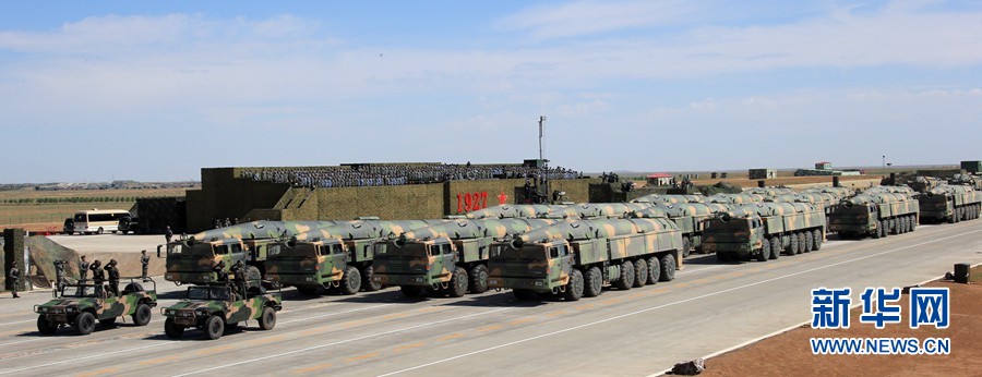 新華社內(nèi)蒙古朱日和7月30日電(記者李兵峰、陳曦)核常兼?zhèn)?,全域懾?zhàn)。在慶祝建軍90周年閱兵中,由火箭軍1個(gè)部隊(duì)方隊(duì)和4個(gè)導(dǎo)彈方隊(duì)、5型導(dǎo)彈組成的戰(zhàn)略打擊群,以“壓軸”方式光榮地接受檢閱。