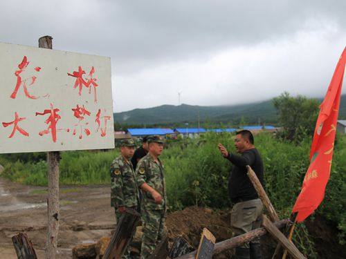 黑龍江同江街津口水位暴漲 邊防官兵緊急搶修危橋