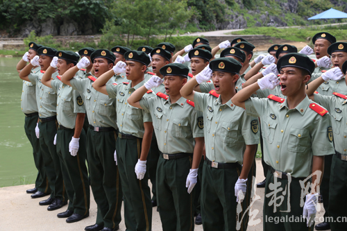 ????“我是中國人民武裝警察,我宣誓:服從中國共產(chǎn)黨的領(lǐng)導(dǎo),全心全意為人民服務(wù),服從命令,嚴(yán)守紀(jì)律……”近日,廣西邊防總隊百色邊防支隊組織40余名臨退老兵,來到中越邊境舉行向界碑告別儀式。