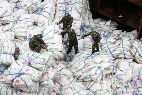 ????8月31日,江蘇邊防總隊(duì)鹽城邊防支隊(duì)官兵連夜作戰(zhàn),在轄區(qū)一碼頭查獲一起走私白糖案件。當(dāng)場(chǎng)抓獲涉嫌走私人員9人,查扣運(yùn)輸船舶1艘、運(yùn)輸貨車26輛,扣押涉嫌走私白糖25000余袋、重約1300噸,涉案價(jià)值近千萬(wàn)元。這是江蘇邊防部隊(duì)查獲的首例外籍船舶無(wú)正規(guī)手續(xù)并非法??糠情_(kāi)放碼頭的走私案件。9月2日,鹽城邊防支隊(duì)將查獲的走私白糖案移交鹽城海關(guān)緝私部門。(皋亞成 章善玉)
