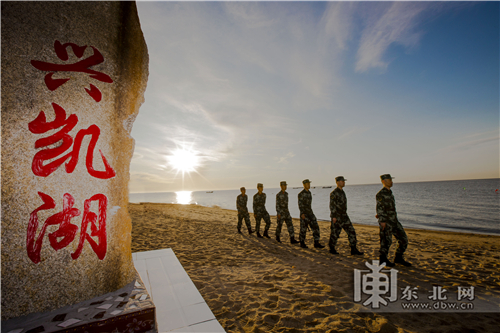 邊防官兵在興凱湖邊巡邏。 周毓亮 攝