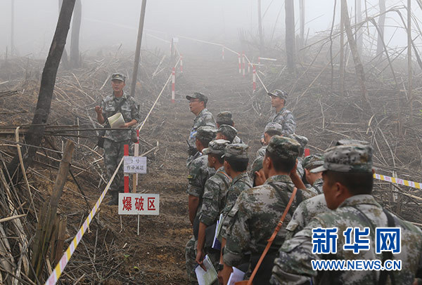集訓(xùn)教員在中越邊境麻栗坡某雷場(chǎng)為參訓(xùn)官兵授課教學(xué)(9月1日攝)。新華社發(fā)(張輝 攝)