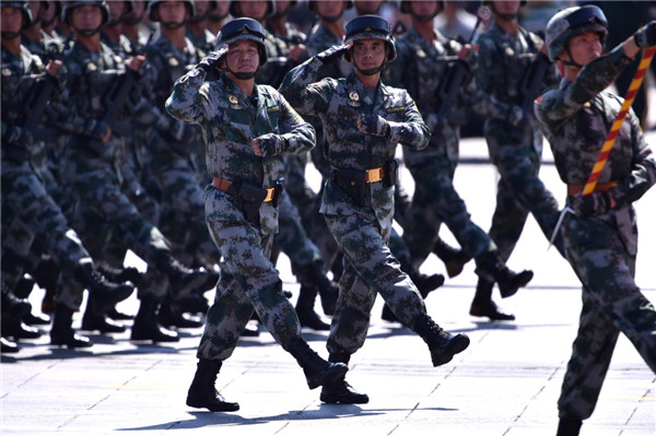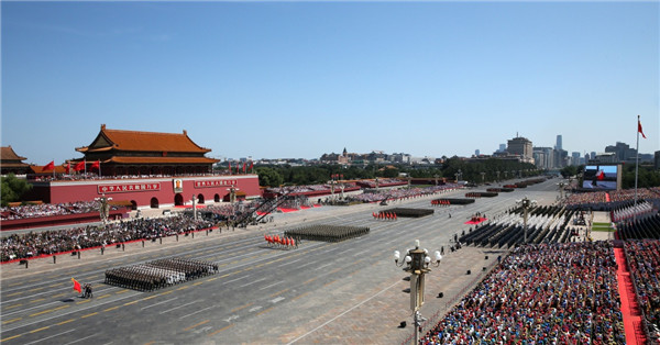 ????2015年9月3日,中國(guó)人民抗日戰(zhàn)爭(zhēng)暨世界反法西斯戰(zhàn)爭(zhēng)勝利70周年紀(jì)念大會(huì)在北京隆重舉行。這是徒步方隊(duì)通過(guò)天安門(mén)廣場(chǎng)。新華社記者 龐興雷 攝