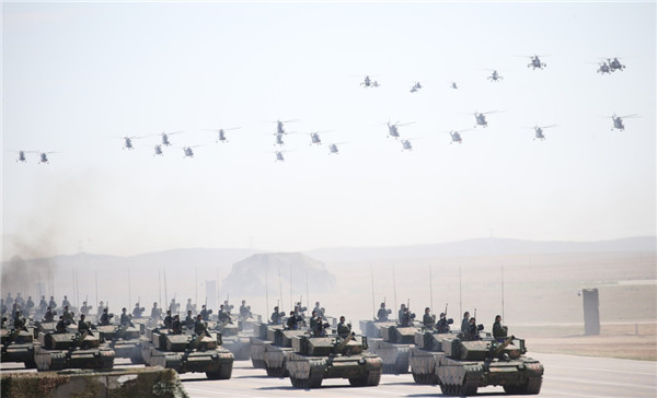 ????2017年7月30日,慶祝中國(guó)人民解放軍建軍90周年閱兵在位于內(nèi)蒙古的朱日和訓(xùn)練基地舉行。新華社記者 查春明 攝