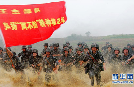 ????在一次對(duì)抗演習(xí)中,“王杰班”所在連隊(duì)官兵發(fā)起沖鋒(2015年6月25攝)。新華社發(fā)(趙聰 攝)