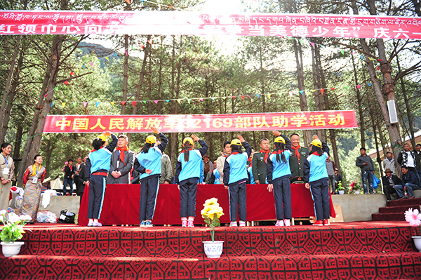 ????邊防官兵與貧困學(xué)生開展結(jié)對(duì)助學(xué)活動(dòng)。張迅 攝