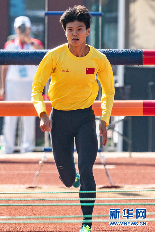 10月20日,中國隊(duì)選手盧嬪嬪在比賽中。 當(dāng)日,在武漢舉行的第七屆世界軍人運(yùn)動會軍事五項(xiàng)女子個(gè)人全能障礙跑項(xiàng)目中,中國隊(duì)選手盧嬪嬪以2分10秒09的成績打破該項(xiàng)目世界紀(jì)錄,排名第一。 新華社記者劉金海攝