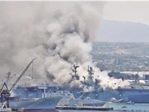 ????“好人理查德”號(hào)兩棲攻擊艦火災(zāi)現(xiàn)場(chǎng)濃煙滾滾