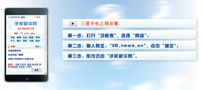 三星:依次選“上網(wǎng)鍵”-“收藏夾”-選擇一個空的收藏夾地址-確認url地址-輸入“手機新華網(wǎng)”