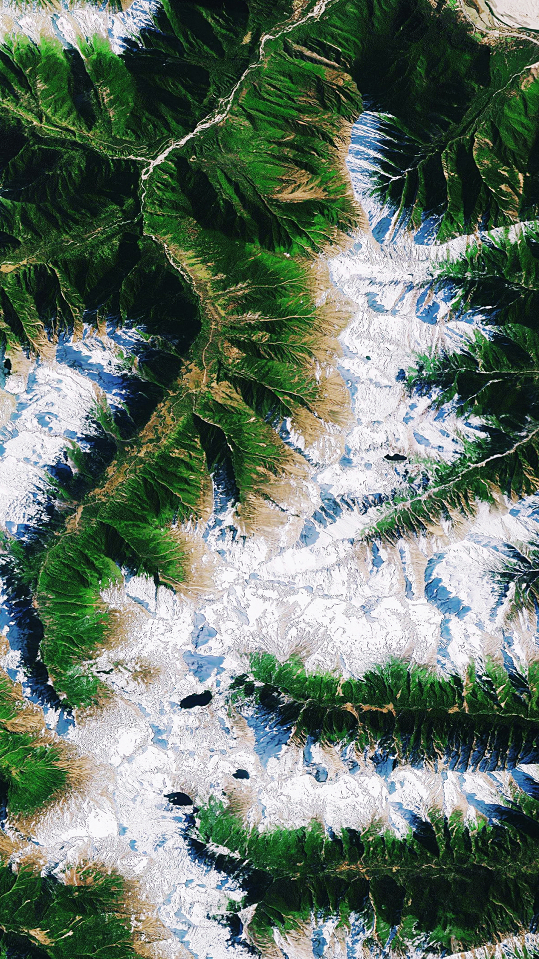 ▲圖為西藏自治區(qū)墨脫縣局部衛(wèi)星圖,這是一個(gè)森林與冰雪相生相伴的地方。衛(wèi)星數(shù)據(jù)來源:資源三號(hào)