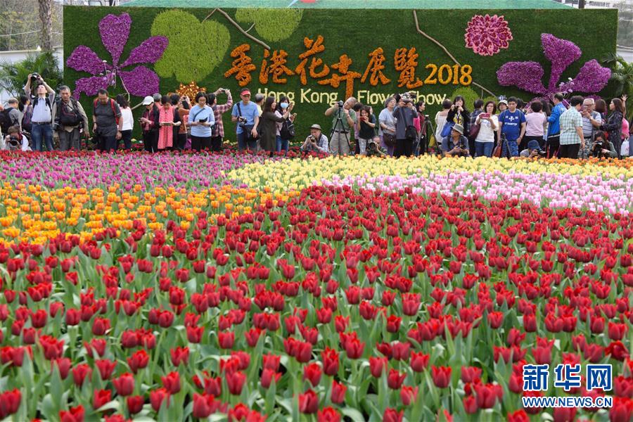 3月16日,市民在香港花卉展覽上參觀拍攝。當(dāng)日,2018年香港花卉展覽在香港維多利亞公園揭幕,展出約40萬株花卉,吸引眾多市民和游客前往參觀。新華社記者 秦晴 攝