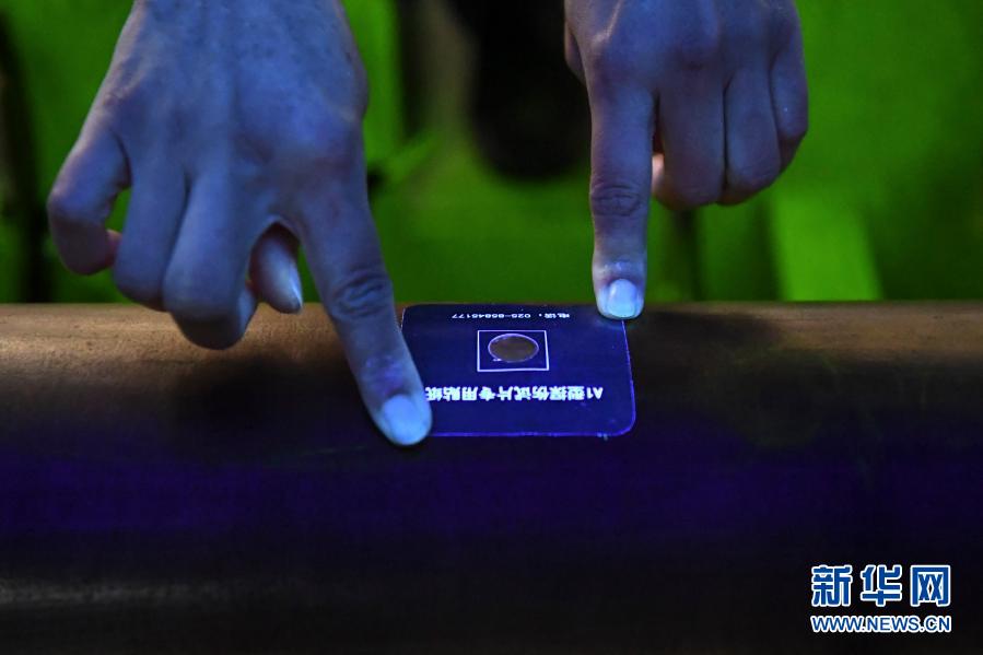 2月1日,柳州車輛段車輪車間無損檢測員楊潔在粘貼校驗試片。新華社記者 張愛林 攝