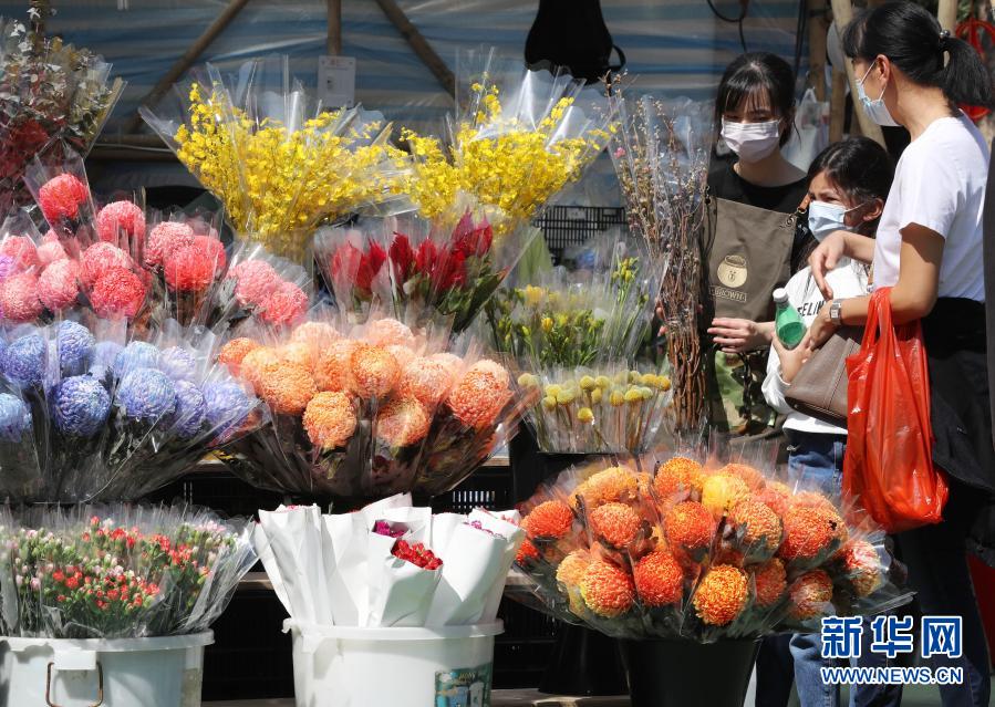2月6日,市民在香港維多利亞公園的年花銷(xiāo)售點(diǎn)選購(gòu)鮮花。新華社記者 李鋼 攝