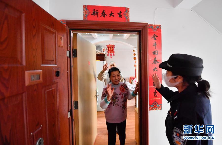 2月11日,在天津市紅橋區(qū)隆春里社區(qū)結束入戶走訪后,楊曉惠(右)和居民告別。新華社發(fā)(孫凡越攝)
