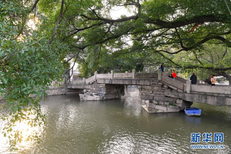 這是2月21日拍攝的福州萬壽橋。橋旁綠樹成蔭,使這里成為臨近居民和游客避暑遮陰的好去處。新華社記者 林善傳 攝