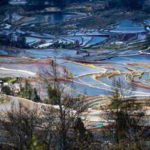 春日里,位于云南省紅河哈尼族彝族自治州元陽縣境內(nèi)的哈尼梯田在不同光照條件下呈現(xiàn)出豐富色彩,與周邊村寨、山系等和諧相融,猶如一幅幅色彩斑斕的油畫,美不勝收。