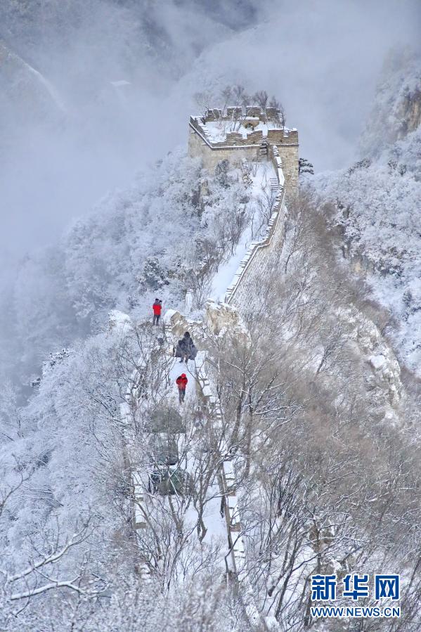 3月1日在北京市懷柔區(qū)拍攝的雪后箭扣長(zhǎng)城美景。新華社發(fā)(劉憲國(guó) 攝)