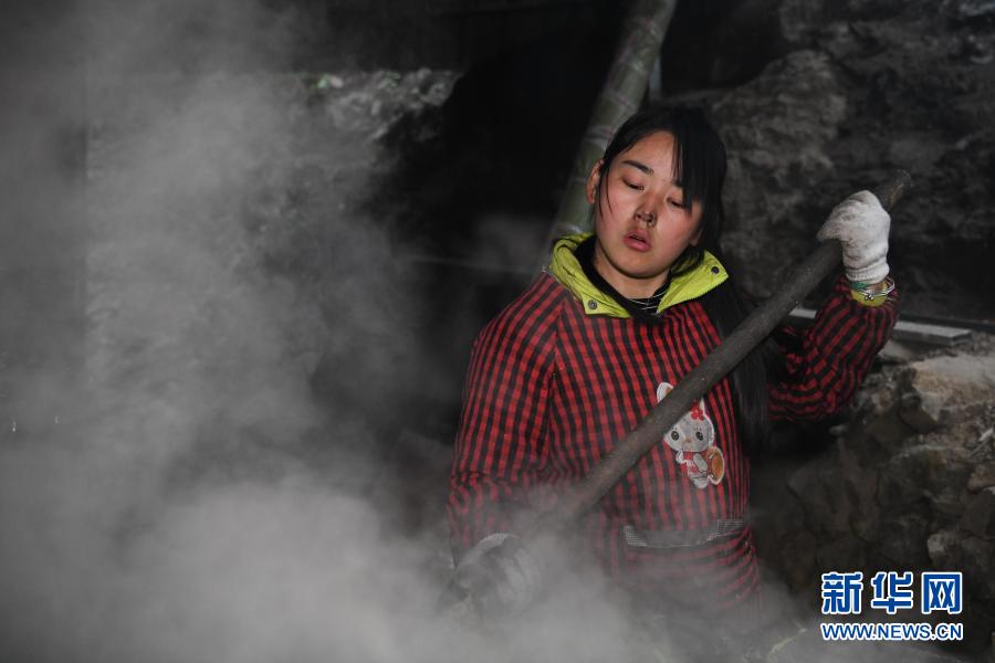 張志菊在自家的農(nóng)場里準(zhǔn)備豬飼料(2月25日攝)。