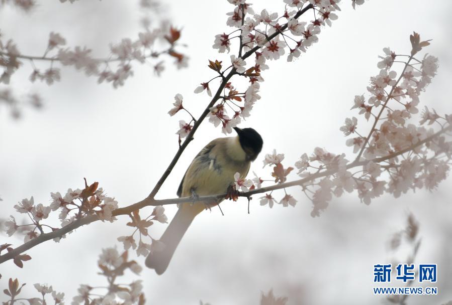3月2日,在湖北省恩施土家族苗族自治州宣恩縣貢水河國家濕地公園,一只黃臀鵯在花枝上停留。新華社發(fā)(宋文 攝)
