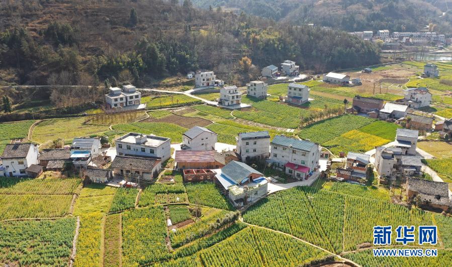 3月3日,安康市漢濱區(qū)迎風(fēng)壩油菜花盛開(無人機(jī)照片)。新華社記者 陶明 攝