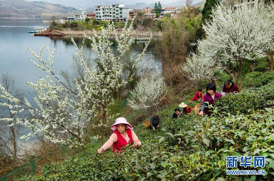 3月4日,安康市漢濱區(qū)流水鎮(zhèn)群眾在漢江之濱采摘新茶。新華社記者 陶明 攝