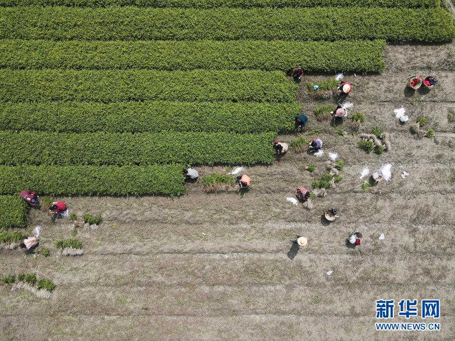 3月13日,在遵義市余慶縣白泥鎮(zhèn)滿溪村,村民在田間勞作(無人機(jī)照片)。新華社發(fā)(穆明飛 攝)