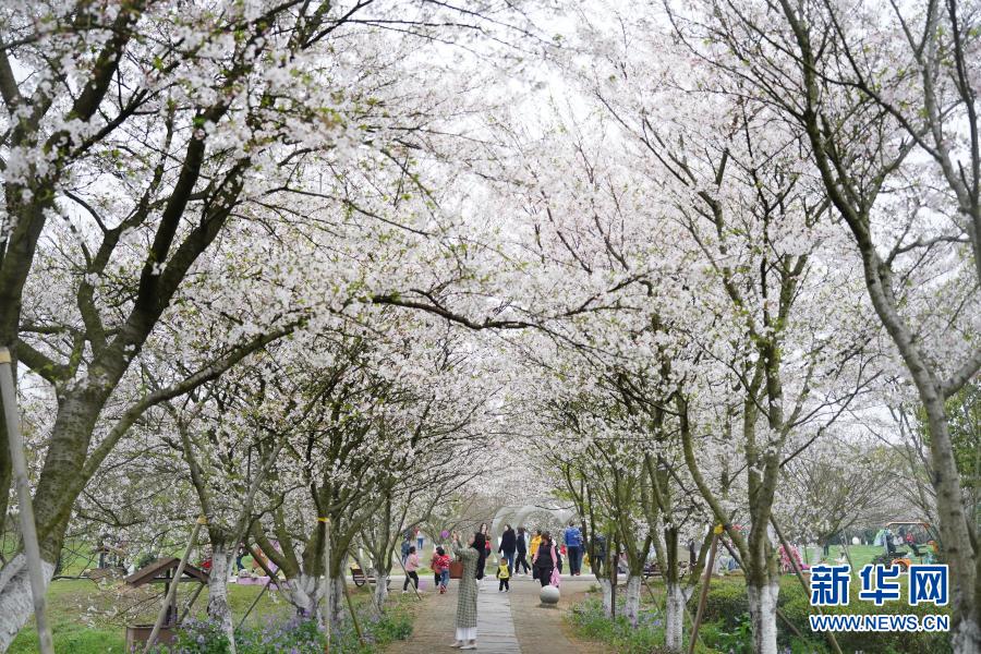 近日,江西省南昌縣鳳凰溝景區(qū)3萬株櫻花競相綻放,吸引游客前來賞花踏青,樂享春光美景。