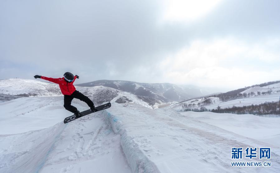 3月20日,冬殘奧會國家集訓(xùn)隊單板滑雪運(yùn)動員賀一朋在冬殘奧會訓(xùn)練基地訓(xùn)練。