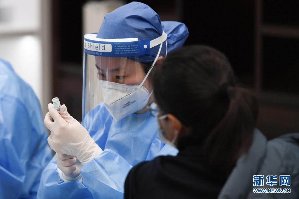 3月25日,醫(yī)務(wù)人員準(zhǔn)備為一位企業(yè)員工接種新冠疫苗。