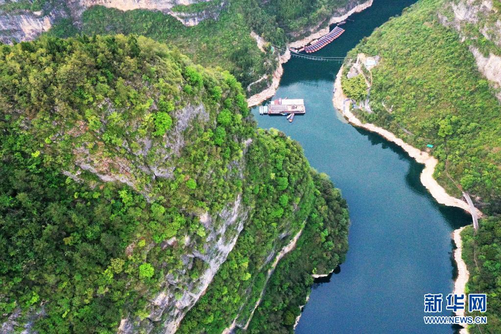 仲春時節(jié),位于重慶市巫山縣境內(nèi)的小三峽呈現(xiàn)出“一江碧水、兩岸青山”的秀美景象。