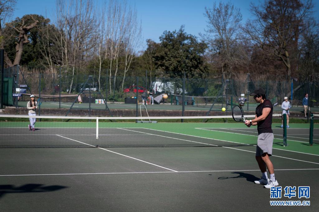 3月29日,人們在英國倫敦攝政公園的網(wǎng)球場打網(wǎng)球。