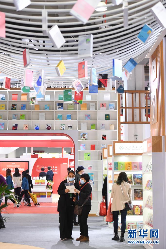 3月31日,參展人員在2021北京圖書訂貨會上參觀。