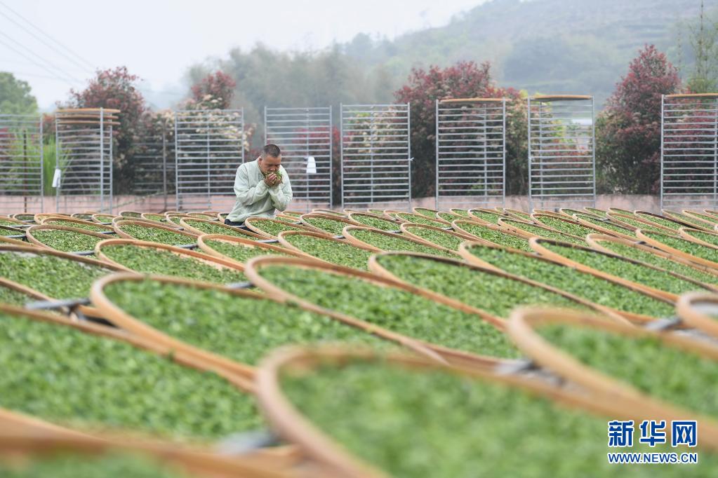 4月2日,制茶師傅在福鼎佳陽(yáng)畬族鄉(xiāng)一茶廠識(shí)別日曬茶葉的香氣。新華社記者 林善傳 攝