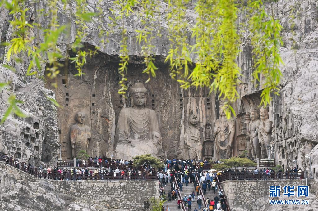 4月4日,游客在位于河南洛陽的龍門石窟景區(qū)內(nèi)參觀游覽。