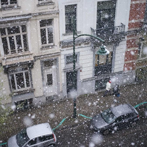 這是4月5日在比利時布魯塞爾拍攝的雪景。