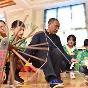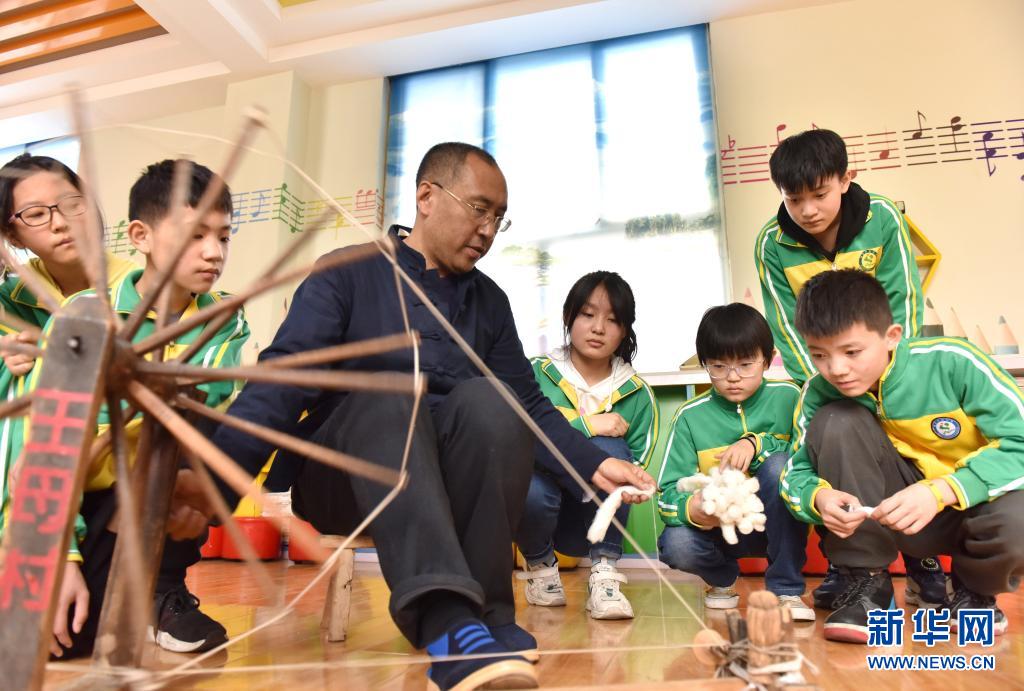 4月7日,威縣土布紡織技藝傳承人高慶海在威縣第四小學(xué)向?qū)W生演示老粗布紡織技藝。近年來,河北省邢臺市威縣積極開展“非遺傳承進(jìn)校園”活動(dòng),將當(dāng)?shù)靥厣沁z項(xiàng)目引入學(xué)校課堂,讓學(xué)生近距離感受民間傳統(tǒng)技藝的魅力,促進(jìn)非遺文化的保護(hù)和傳承。新華社記者 朱旭東 攝