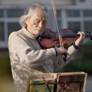 這是一張拼版照片,左圖為:2020年3月5日傍晚,在湖北省武漢大學人民醫(yī)院東院,復旦大學附屬中山醫(yī)院支援湖北醫(yī)療隊醫(yī)生在護送患者王欣做CT的途中停下,讓住院近一個月的老人欣賞久違的日落(甘俊超 攝);右圖為:3月24日,“看夕陽的老人”王欣在東西湖區(qū)園藝花城小區(qū)內(nèi)拉小提琴(新華社記者熊琦攝)。新華社發(fā)