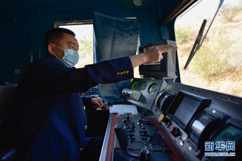 中國鐵路成都局集團公司成都客運段5633/5634次列車駕駛員趙瑋在發(fā)車前確認信號(4月11日攝)。新華社記者 胥冰潔 攝