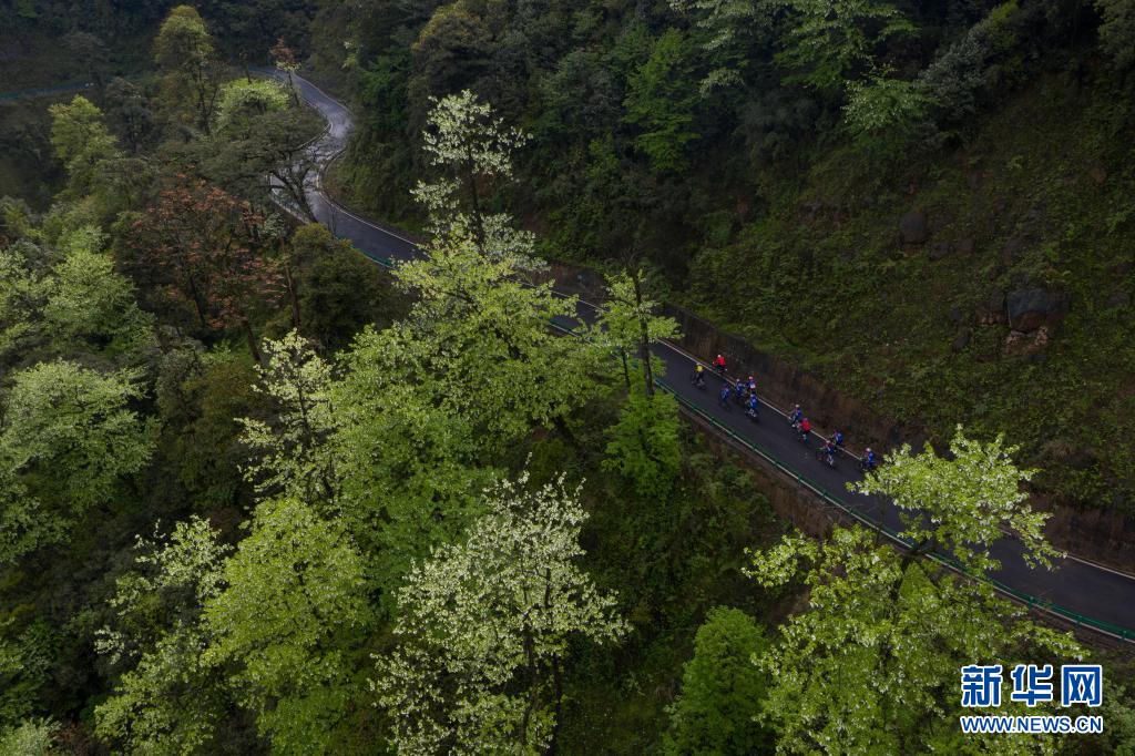 4月18日,騎行愛好者在龍蒼溝國(guó)家森林公園里騎行。新華社記者 江宏景 攝