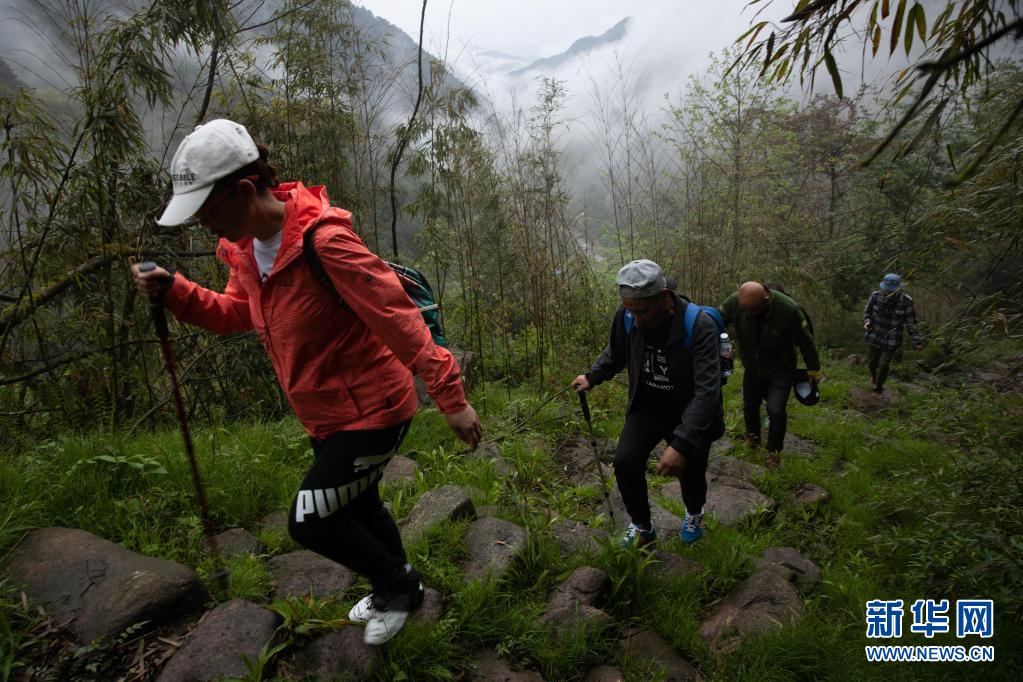 4月18日,徒步愛(ài)好者沿著大相嶺茶馬古道穿越。新華社記者 江宏景 攝