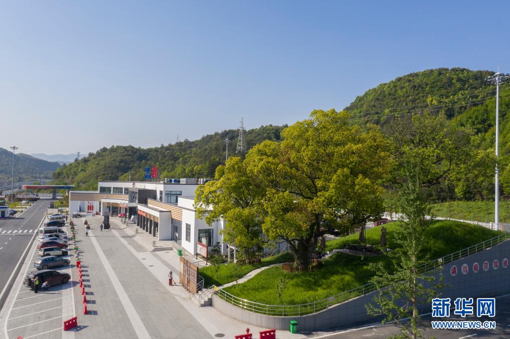 杭州第二繞城高速西復(fù)線次塢服務(wù)區(qū)有3棵樹齡在100年以上的古樹。服務(wù)區(qū)在建設(shè)過程中,將古樹保護(hù)起來,現(xiàn)已成為一道特色景觀。新華社發(fā)(郭斌 攝)