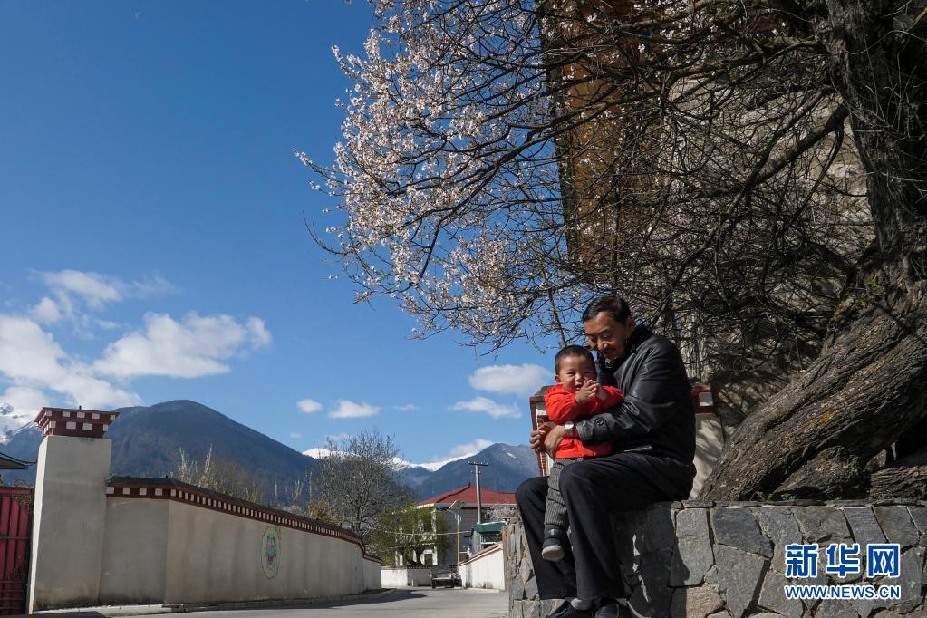這是巴吉村村黨支部書(shū)記米瑪和他的孫子(4月6日攝)。新華社記者 洛卓嘉措 攝