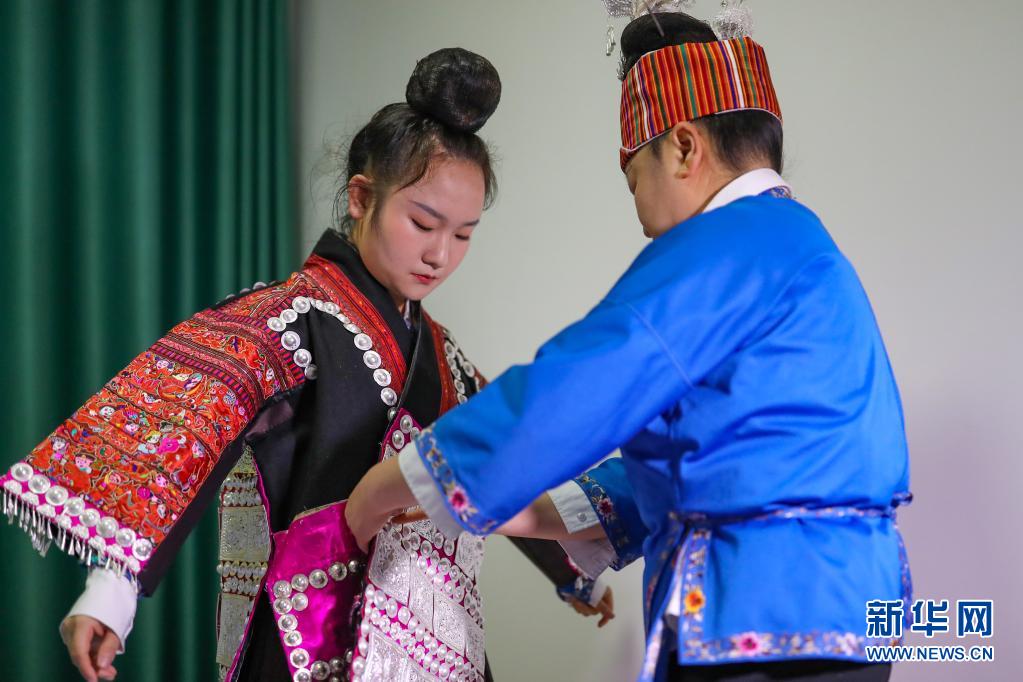 今年姊妹節(jié)前夕,母親張?jiān)雅畠菏⒀b的銀飾拿到銀飾店里進(jìn)行清洗,希望女兒能在盛裝巡演上展示最美的一面。4月25日姊妹節(jié)當(dāng)天,張佳麗早早起床,在母親和同學(xué)的幫助下,開始化妝、穿衣、佩戴銀飾,一直忙到9點(diǎn)才準(zhǔn)備完畢。身著盛裝站在巡演隊(duì)伍中,張佳麗說(shuō):“這是我們苗族同胞最大的節(jié)日,無(wú)論身處何地,我都會(huì)如約回家參加活動(dòng)!”