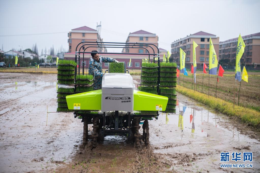 在湖南省益陽(yáng)市沅江市草尾鎮(zhèn)沅江現(xiàn)代農(nóng)業(yè)技術(shù)研發(fā)基地,工作人員演示插秧機(jī)操作(3月2日攝)。新華社記者 陳思汗 攝